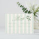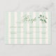 Sage green wedding RSVP response card featuring elegant vertical stripes with a delicate chinoiserie floral accent. Designed for guests to joyfully accept or decline while selecting their meal choice, this response card adds refined garden charm to your coordinated invitation suite. Perfect for spring and summer weddings with a romantic English cottagecore aesthetic.
