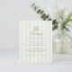 Sage green wedding details enclosure card featuring elegant vertical stripes with a chinoiserie floral accent for a refined garden aesthetic. Perfect for sharing venue information, hotel blocks, transportation, and wedding website details. Inspired by English cottagecore style, this design adds a soft romantic touch to your invitation suite while keeping your information organised and beautifully presented.