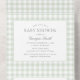 Invite friends and family to share in the joy of your little one's arrival with this elegant sage green gingham baby shower invitation.