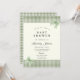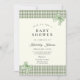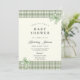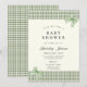 Celebrate the upcoming arrival of a little one with this charming baby shower invitation, featuring a simple green gingham border and back, elegant, black script fonts, and a sweet watercolor bows. Perfect for a country-style celebration, this invitation is both warm and stylish. Customize the text for your event details and create a keepsake-worthy invite that guests will adore.