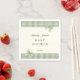 Celebrate the upcoming arrival of a little one with this charming baby shower napkin, featuring a simple green gingham border and back, elegant, black script fonts, and a sweet watercolor bows. Perfect for a country-style celebration, this invitation is both warm and stylish. Customize the text for your event details and create a keepsake-worthy invite that guests will adore.