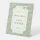 Celebrate the upcoming arrival of a little one with this charming baby shower pedestal sign, featuring a classic green gingham border and back, elegant, black script fonts, and a sweet watercolor bow at the top. Perfect for a country-style celebration, this invitation is both warm and stylish. Customize the text for your event details and create a keepsake-worthy invite that guests will adore.