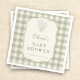 Baby shower party napkins designed with a sage green gingham pattern for a soft, classic look. The layout coordinates easily with gingham and floral baby shower themes while keeping table settings clean and cohesive. Suitable for baby showers, brunches, and dessert tables. Fully customizable text with a print-ready layout.