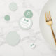 The classic combination of sage green gingham and a bow tie make for the perfect baby shower to celebrate a little gentleman on the way. This confetti set coordinates with the Lea Delaveris Design green gingham bow tie baby shower collection with its blue dotted pieces, monogram or initial, bow tie and custom text. Also works well for a baptism or sip and see.