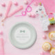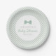 Sage green gingham dotted bow tie baby shower paper plate
