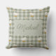 Sage Green Gingham Goose Custom Name Nursery Cushion
