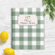 Sage Green Gingham Pattern Recipe Cookbook Notebook