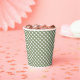 Sage green gingham pattern. Green and white gingham patterned paper cups.
