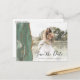 This elegant horizontal save the date postcard features a sage green watercolor agate border trimmed with faux gold glitter. Easily replace the sample image with your own photo of the future bride and groom. The customisable text combines black handwriting script and copperplate font; a white gradient filter helps make the text pop. Add your return address and additional details to the reverse side.