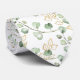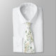 A simple yet elegant wedding neck tie featuring sage green and shimmering gold eucalyptus sprigs in a light pattern against a solid pure white