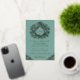 Sage grey green and foil gold or foil colour of your choice hand drawn growing leaf botanical art after the wedding, evening wedding reception invitations with couples photo on reverse. Simple leaf design circling your own monogram initials design. Other colours and matching items available. © Original leaf drawing and design by Sarah Trett for www.mylittleedenweddings.com on zazzle.