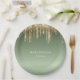 Sage Green Gold Sparkle Glitter Drips Birthday Paper Plate