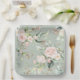 Gorgeous sage green with pink blush watercolor floral paper plates for all occasions.