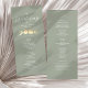 Elegant sage green wedding ceremony program featuring romantic faux gold lovebirds, modern white text, and stylish typography. This minimalist flat card outlines each part of your wedding ceremony—from the prelude to the recessional—with space to add names, music, or readings. A sophisticated choice for spring, summer, fall, or botanical weddings. Matches the full gold lovebirds suite.