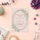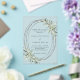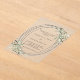 A clear, transparent background decorated with sage green greenery. A faux silver frame. Personalise and add your names and details.