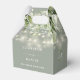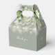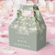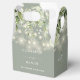 Elegant sage green floral greenery string lights wedding favour box personalised with your names, monogram initials, wedding date and special message. Designed by Thisisnotme©