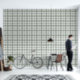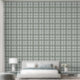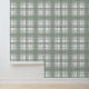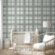 This wallpaper features a plaid pattern in sage green, grey and white.