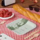 Hand-drawn sage green floral botanical wedding paper plate features original watercolor artwork with delicate minimalist flowers and elegant hand-lettered calligraphy. Three soft blooms on slender stems create an airy, sophisticated composition perfect for modern couples seeking artisanal stationery.