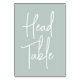 Simple and chic table number cards in Sage Green and white make an elegant statement at your wedding or event. Design features "head table" in handwritten script lettering. Design repeats on both sides. Individually numbered cards sold separately; order each table number individually from our collection.