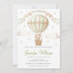 Sage Green Hot air balloon Teddy bear Baby shower Invitation