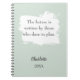 A sage green background, with a white brush stroke. Inspiratiional, motivational Quote: The future is written by those who dare to plan. Personalise and add your name and a year. Grey text.