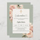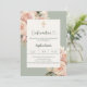 A soft ivory colored frame and sage green colored background decorated with dusty rose and ivory colored florals. Personalize and add your name and the details.