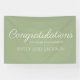 Celebrate the happy couple in style with this elegant sage green engagement banner. Featuring a soft, earthy green background and classic white typography, this minimalist design is perfect for modern or rustic-themed engagement parties. The text reads “Congratulations on your engagement” in a beautiful script and serif font pairing, with space to personalise the couple's names. This banner makes a lovely photo backdrop, welcome sign, or party decoration and pairs seamlessly with neutral, boho, or greenery-themed décor.