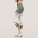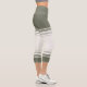 Sage Green Ivory Floral Line Art Athletic Stripes Capri Leggings