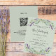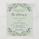 A sage green background decorated with lavender flowers and eucalyptus greenery. Personalise and your names and details.