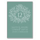 Circling leaf design monogram wedding table number. Add your own table numbers on by one, name and wedding date in white on a sage green background. Other colours and matching wedding items available. © Original leaf drawing and design by Sarah Trett for www.mylittleedenweddings.com on zazzle.