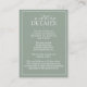We're loving this trendy, modern sage green detais card! Simple, elegant, and oh-so-pretty, it features a hand drawn leafy wreath encircling a modern wedding monogram. It is personalised in elegant typography, and accented with hand-lettered calligraphy. Finally, it is trimmed in a delicate frame and the back of the card cotains the details, which allows the addition of the information you need to give, This may include driving directions, reception information, hotel information, etc. This can also include your wedding website.The card holds up to 20 lines of text. Text is aligned to top and flows down, you may need to adjust vertical positioning depending on the amount of text by clicking customise further. Part of a matching wedding set. See full collection here: https://www.zazzle.com/collections/sage_green_leafy_crest_monogram_wedding_invitation-119735143483526238 Contact designer for matching products to complete the suite, OR for colour variations of this design. Copyright Anastasia Surridge for Elegant Invites, all rights reserved.