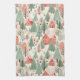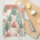 Sage Green Light Pink Pine Cones Roofs and Trees Tea Towel