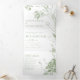 Sage green line art flowers photo wedding Tri-Fold invitation