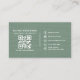 Give your wellness brand a soft, natural, and professional look with this sage green linen massage therapist QR code business card. The textured linen background adds warmth and authenticity, while the sage green palette promotes calm, balance, and holistic well being. The built in QR code allows clients to instantly access your booking page, service menu, website, or contact details. Clean layout and modern typography ensure your name and information stay clear and easy to read. Fully customizable and print ready for appointments, retreats, events, and everyday client interactions.