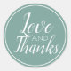 Sage Green Love and Thanks Script Classic Round Sticker