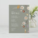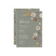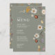 Wedding menu cards are chraacterised by boho style, floral artwork, sage green and beige colours, with a mix of different font styles, often in different sizes, to create a unique, eclectic look that makes this menu's natural aesthetic.