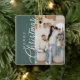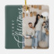 Sage Green Merry Christmas Photo Ceramic Ornament