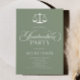 This is a Sage Green Minimalist Elegant Lawyer Scale Graduation Invitation!