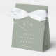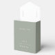 These sage green minimalist monogram wedding favour boxes can be personalised with your information in chic typography. Designed by Thisisnotme©