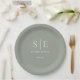 Sage Green Minimalist Monogram Wedding Paper Plate