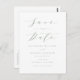 Announce your wedding date to family and friends with this minimalist save the date announcement postcard. It features a sage green dainty script and classic typography. Personalise by adding your details. This minimalist save the date postcard is perfect for any wedding theme or season.