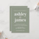 Sage Green Minimalist Wedding Invitation card featuring crisp white serif typography on a soft sage green background. The clean, balanced layout highlights the couple’s names with elegant hierarchy, making it ideal for modern weddings, garden ceremonies, and timeless formal celebrations. A refined choice for couples seeking understated elegance with a natural, neutral color palette. Easily personalize with your details.