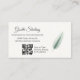 A soft, professional business card design featuring a graceful sage green feather and QR code for quick mobile access to services. Ideal for notaries who want to project calm confidence, trustworthiness, and approachability with every interaction.
