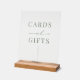 Modern, elegant wedding acrylic sign for cards and gifts features a minimalist sage green design with modern lines, an elegant script font, and classy serif font. The acrylic sign can be ordered with or without a wooden stand. Check out matching items in the "Sage Green Modern Elegant" collection.