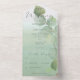 AVAILABLE WITH OR WITHOUT A QR CODE TO SCANOR WITH DINNER SELECTION OPTIONS. This design has a soft green watercolor ombre wash background with a single sprig of gold stemmed eucalyptus. Fresh and beautiful! Add a QR code to your invitation so that gusts can quickly access your wedding Website for details, directions, menu options, and more, or add your gift registry Web URL. Personalised All-In-One invitations are a unique combination of both a beautifully printed custom invitation with an easy to tear off perforated RSVP postcard. And they are so easy to use! You simply fold, then seal the back flap with the three included clear stickers, and mail. And when your guests receive your custom invite, they just tear the perforated RSVP Card off and drop it back in the mail to you!