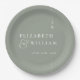 Sage Green Modern Minimalist Monogram Wedding Paper Plate