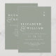 This sage green minimalist monogram wedding invitation can be personalised with your information and wedding website QR code in modern typography. Designed by Thisisnotme©