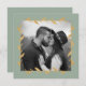 Sage Green Modern Photo Gold Leaves Wedding Invitation