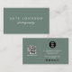 A beautiful design incorporating your business logo and your QR Code. This elegant sage green modern script business card is ideal for all types of businesses. A simple and professional way to introduce your business. Social media icons included in the design of this business card for you to use. Personalise your details to create your own unique business card.