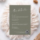 Introducing the Modern Sage Green Script Wedding Details Enclosure Card! This beautiful card is perfect for adding a personal touch to your wedding invitation suite. The simple modern design features sage green text on a white background, with stylish handwriting calligraphy for the title. On the reverse side, you’ll find a solid sage green colour. Use this enclosure card to share essential wedding details, such as reception time, location, accommodation arrangements, and your wedding website URL. It’s an elegant addition that ensures your guests have all the information they need for your special day.